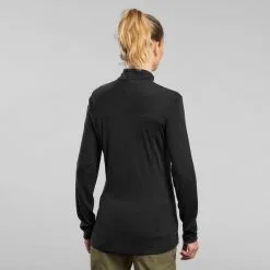 Camiseta Montaña Y Trekking Lana Merina Mujer Forclaz Trek 500 Negro