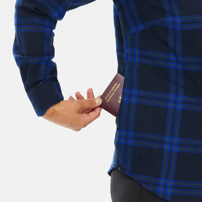 Compra en Decathlon Camisa de cuadros de montaña y trekking manga larga Mujer Forclaz Travel 100 Esta camisa de cuadros ha sido diseñada para que puedas recorrer el mundo con total comodidad y un estilo en tendencia.