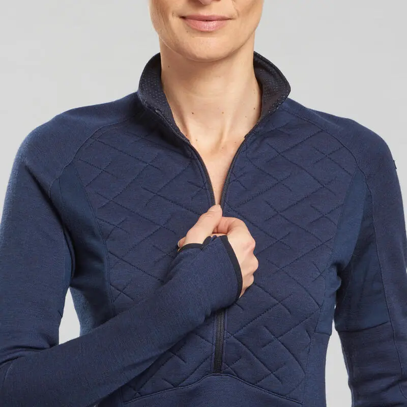 Compra en Decathlon Camiseta de lana merina de trekking montaña manga larga cuello cremallera mujer – MT900 Esta camiseta de manga larga ha sido diseñada, como primera capa, para mantenerte abrigado en tus trekking de varios días con tiempo frío.