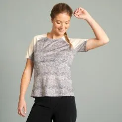 Compra en Decathlon Maillot ciclismo mtb manga corta mujer Rockrider ST 100 Este maillot para mujer ha sido concebido para las primeras travesías MTB con tiempo caluroso.
