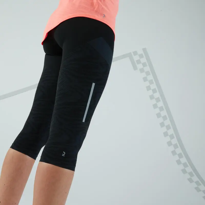 Mallas Corsario Running Mujer Sin Costuras Kiprun Care Negro