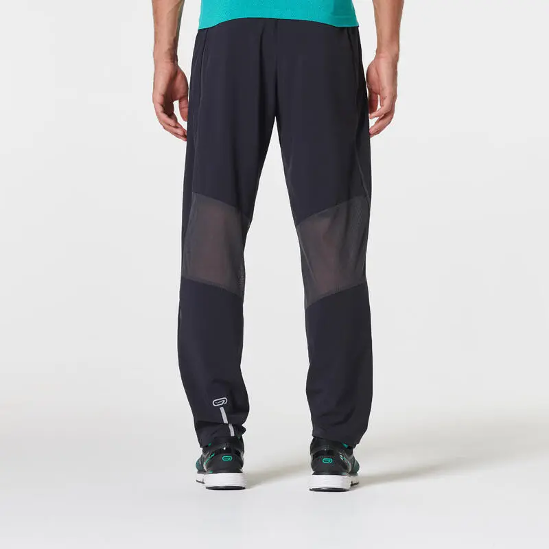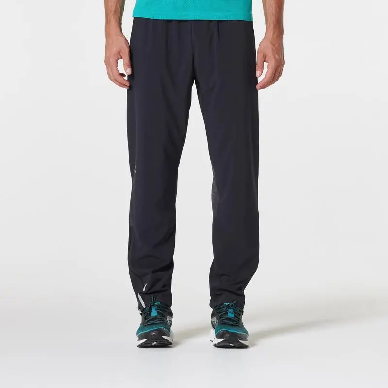 Compra en Decathlon Pantalón running Hombre transpirable Kiprun negro Pantalón de running hombre transpirable y ligero para correr durante todo el año. Cremalleras en los puños para su comodidad. Con dos bolsillos con cremallera